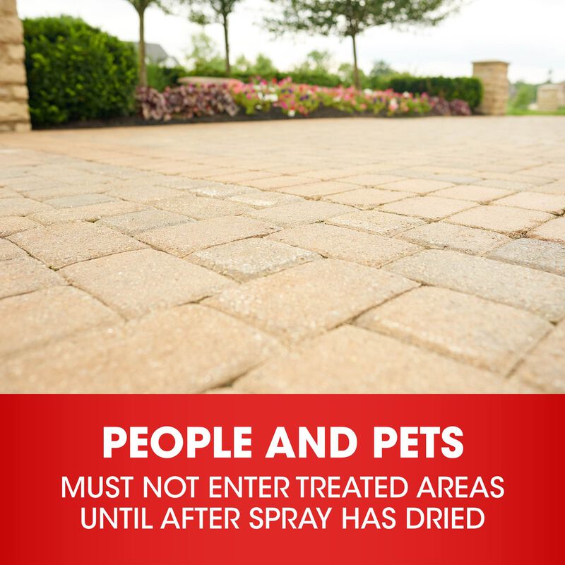 Take control of your outdoor space with Roundup® Weed & Grass Killer₄ Concentrate. It kills tough weeds and grasses to the root, including dandelion, large crabgrass, poison ivy, clover (red & white), spotted spurge, and other broadleaf weeds. It is rainproof in as fast as 30 minutes, produces visible results in hours, and allows you to plant 1 to 30 days after application (see booklet for details). Use Roundup® Weed & Grass Killer₄ Concentrate in flower beds, around trees, along fences, driveways and walkways, freshly cut woody stumps, in large areas for lawn replacement, garden plot preparation and other areas of your yard. Mix the concentrate according to label directions and spot treat or spray evenly each gallon of spray solution over 300 sq. ft. with a tank or hose-end sprayer. Do not allow people or pets to enter the treated area or touch treated plants until spray has dried. One 64 fl. oz. bottle of Roundup® Weed & Grass Killer₄ Concentrate makes between 10.6 to 21 gallons (see booklet for mixing instructions) and covers up to 3,200 to 6,300 sq. ft.